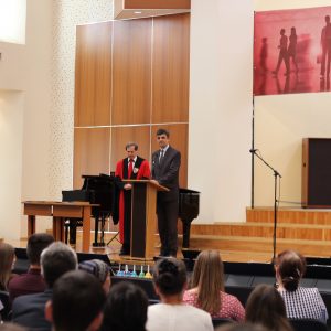 A urmat o piesă interpretată de Orchestra de Clopote “Geneze” a Institutului Teologic Adventist, iar apoi programul a continuat cu cel mai așteptat moment, prezentarea absolvenților. Mai întâi au fost chemați în față studenții programului de studii Teologie Adventistă Pastorală, invitați de lector univ. dr. Gheorghe Modoran, au urmat studenții de la programul de studii Limba și Literatura Română/Engleză nominalizați de lector univ. dr. Elena Petrescu, apoi a fost rândul studenților de la programul de studii Pedagogia Învățământului Primar și Preșcolar, prezentați de lector univ. dr. Eliza Spătărelu, iar în final au urcat pe platformă absolvenții programului de master prezentați de lector univ. dr. Laurențiu Moț.