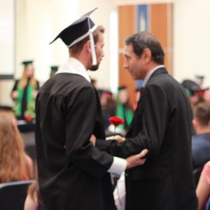 După acest moment emoționant, când a fost citit pentru ultima dată catalogul fiecărei grupe, toți studenții invitați în față au fost declarați absolvenți de către Rectorul Institutului Teologic Adventist, conf. univ. dr. Roxana Paraschiv. Festivitatea de absolvire a continuat cu momentele cele mai solemne ale evenimentului, prezentarea cuvântului de trimitere și rugăciunea de consacrare susținute de pastorii Eduard Călugăru și, respectiv, Romică Sîrbu. După corul absolvenților care a interpretat imnul Promoției 2017 și intervenția șefului de promoție de promoție, studentul Alexandru Țopârlan de la programul de studii Teologie Adventistă Pastorală, studenții au prezentat mesaje de mulțumire și au oferit flori profesorilor, angajaților din campus și, bineînțeles, membrilor familiei care au participat la acest eveniment.